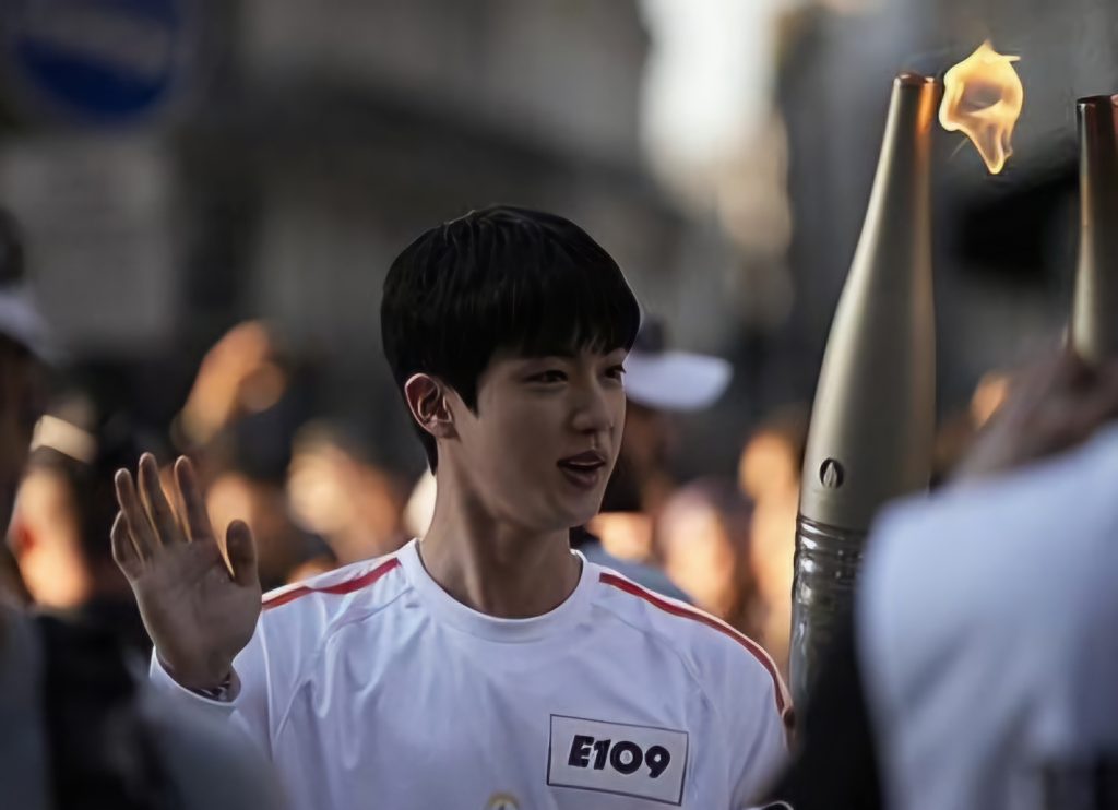 Kantor Berita Yonhap melaporkan, saat Jin muncul dari pusat estafet obor di museum sekitar pukul 20.00, kerumunan orang bersorak-sorai, meneriakkan namanya.
