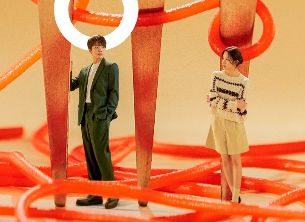 Dalam poster yang baru dirilis, garpu tajam berdiri tegak di atas hamparan mie spageti merah. Eun Gye Hoon dan Noh Da Hyun berdiri di setiap sisi pertigaan, saling melirik penasaran.