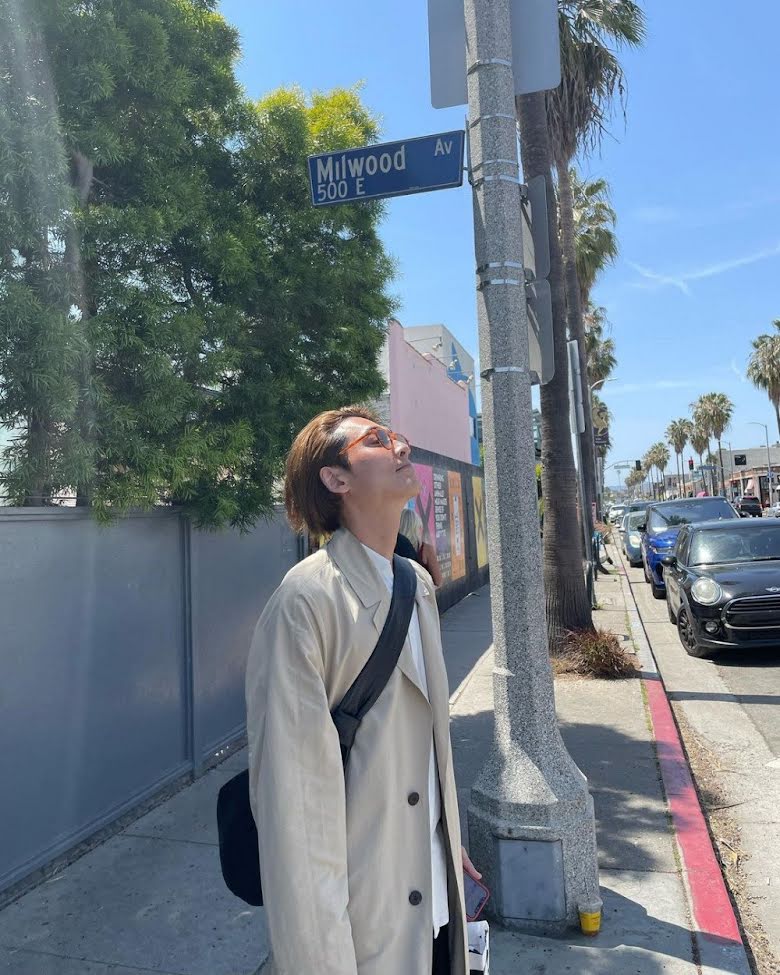Hanya sehari kemudian, Jung Kyung Ho memposting fotonya sendiri di jalanan LA, tepatnya di Millwood Avenue. Dalam gambar, seseorang sedang bersenang-senang dengan ponsel aktor dan mengambil gambar dirinya saat dia dengan manis mencoba menghentikannya.