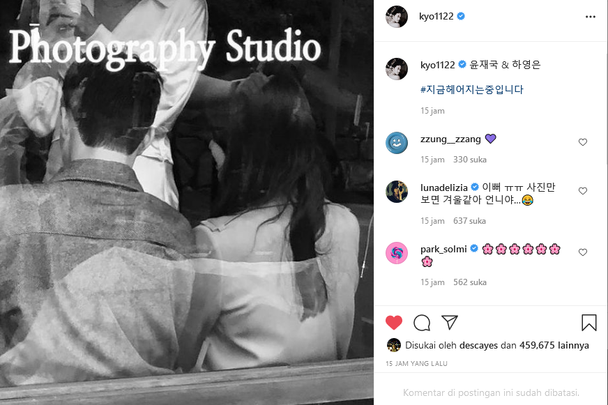 Keterangan Song Hye Kyo berbunyi, “Yoon Jae Guk & Ha Young Eun,” dan dia menambahkan judul drama sebagai tagar.