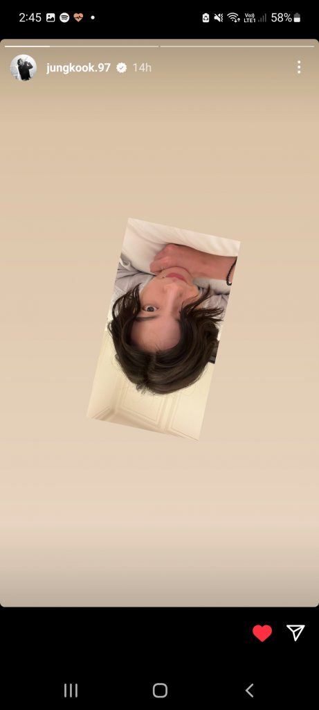 Penyanyi yang pertengahan tahun ini berkolaborasi dengan Charlie Puth dalam lagu “Left and Right” itu mengunggah foto sedang berbaring telungkup mengenakan kaus putih dengan rambut yang mulai memanjang. Foto itu diunggah terbalik.