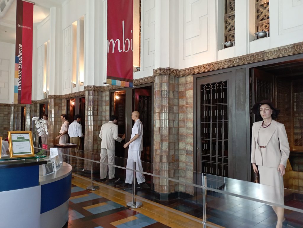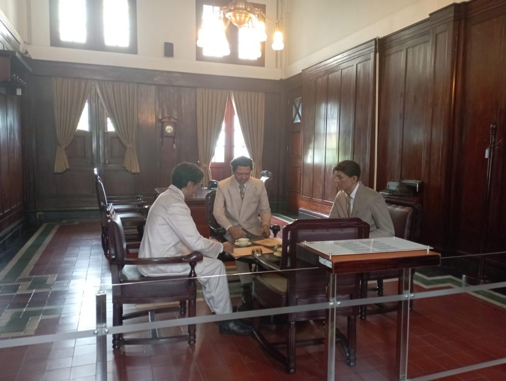 Jangan kaget kalau memasuki lokasi ini karena penerangannya minim dan ada beberapa patung yang mirip manusia hidup. Beruntung saat kesana Jumat (9/12/2022) ada empat mahasiswa jurusan pariwisata Universitas Bunda Mulia, Tati, Manda, Albert dan Vikram yang sedang mengerjakan tugas kampus. Akhirnya saya mengikuti mereka sambil ngobrol dan berdiskusi. “Jujur saya lebih suka ke museum dibanding ke mal. Ke mal kan gitu-gitu aja, kalau kesini kita dapat pengetahuan karena belajar sejarah,”kata Tati dan Manda.